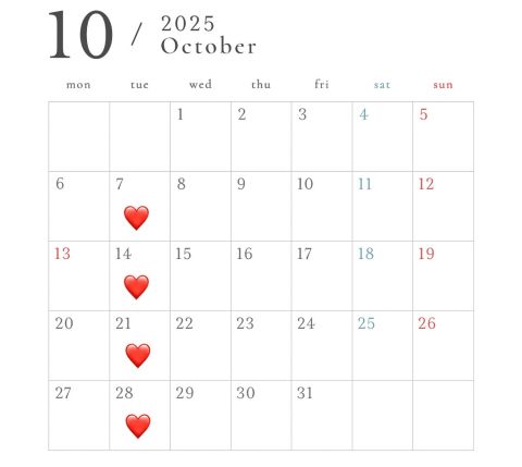 10月の定休日のご案内です。